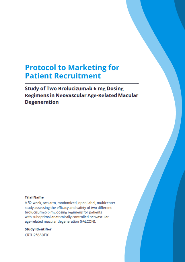 Outlines trial details for patient recruitment marketing activities.
